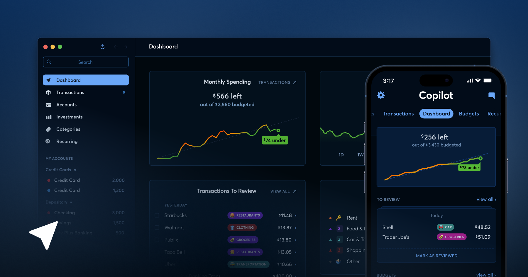 Aggregates all your accounts, credit cards, and brokerages into one clean interface