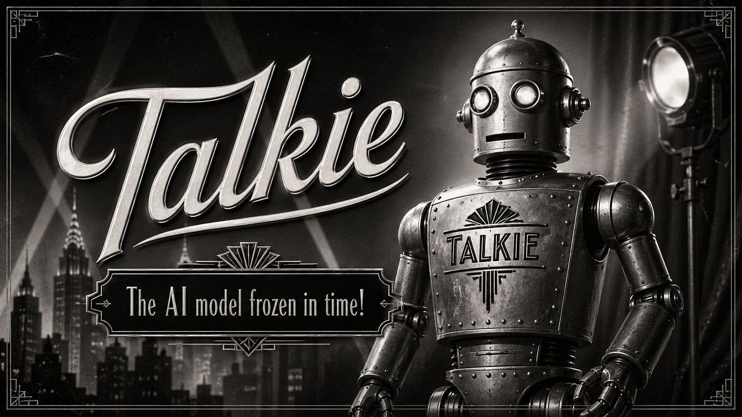 Researchers Nick Levine, David Duvenaud, and Alec Radford demoed Talkie, a 13B-parameter AI model trained only on text from before 1931. The project tests how an AI system reasons when its entire worldview predates the internet.