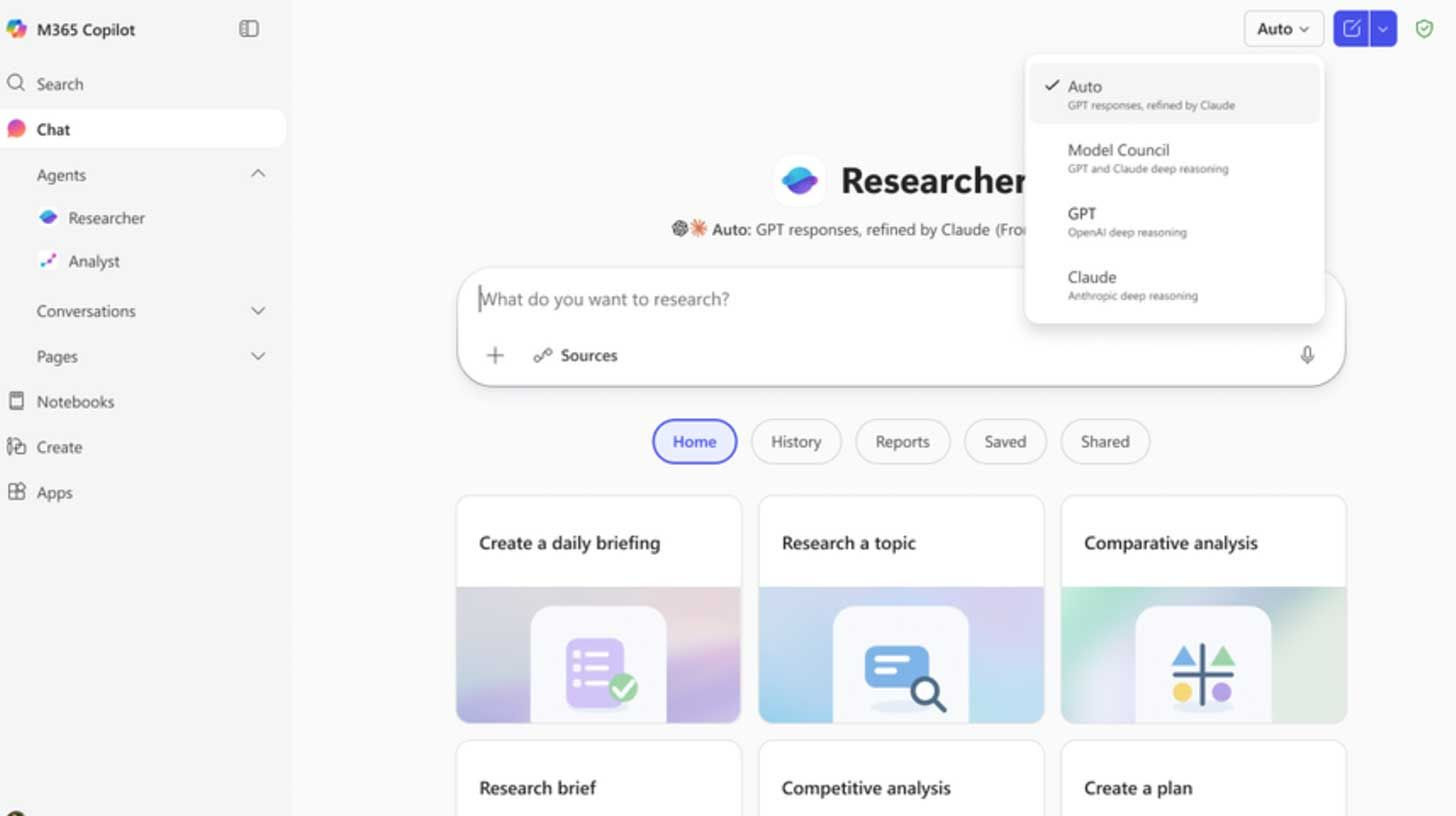Copilot Researcher uses OpenAI for drafting, with Critique adding Anthropic’s Claude to review outputs.